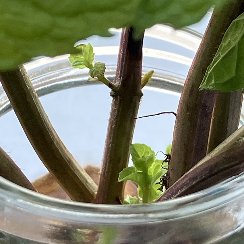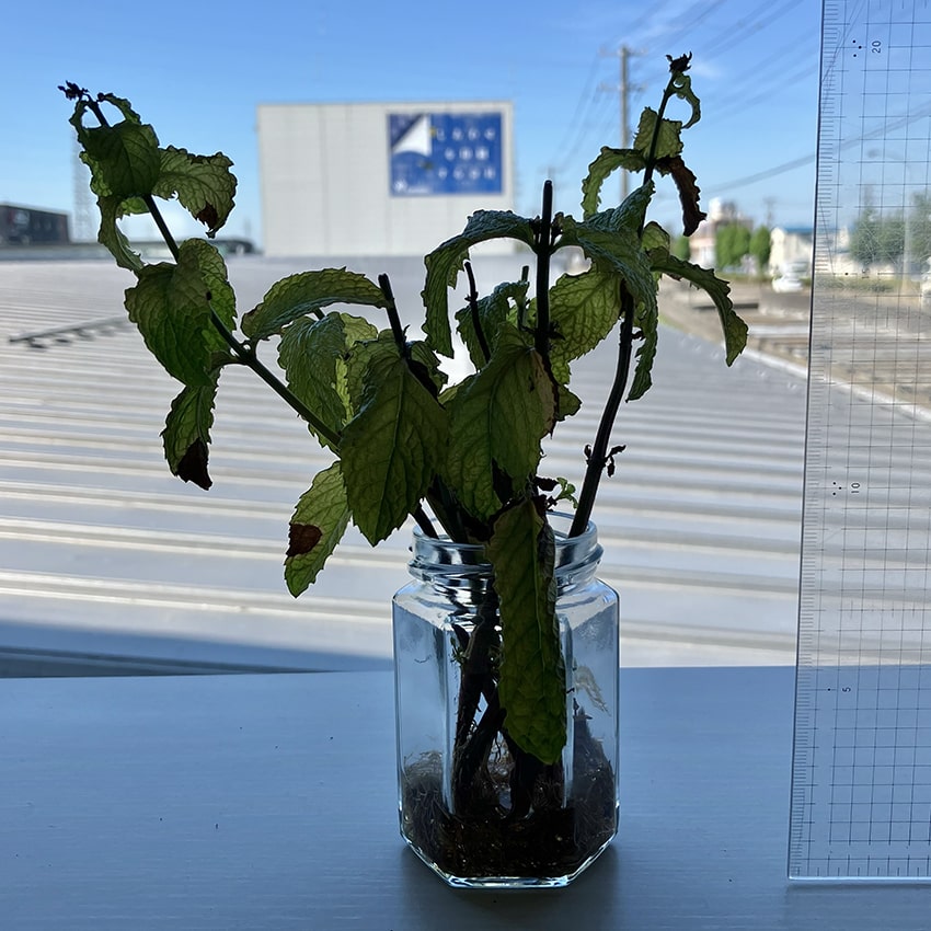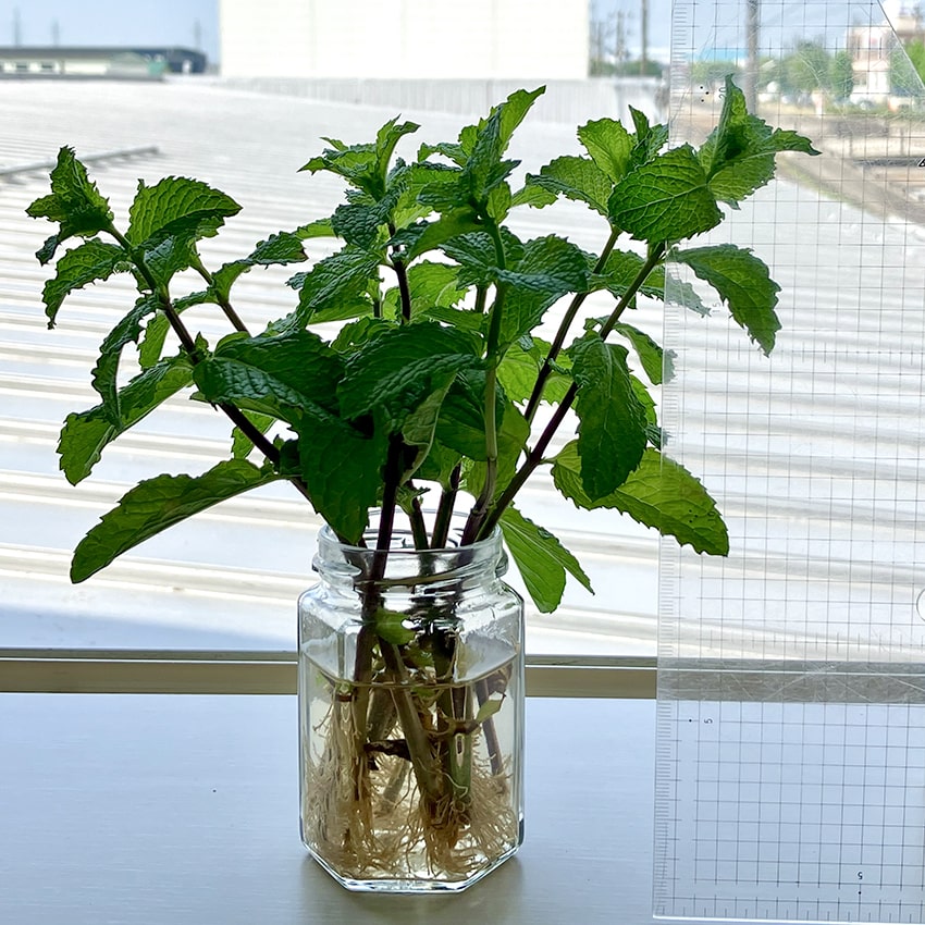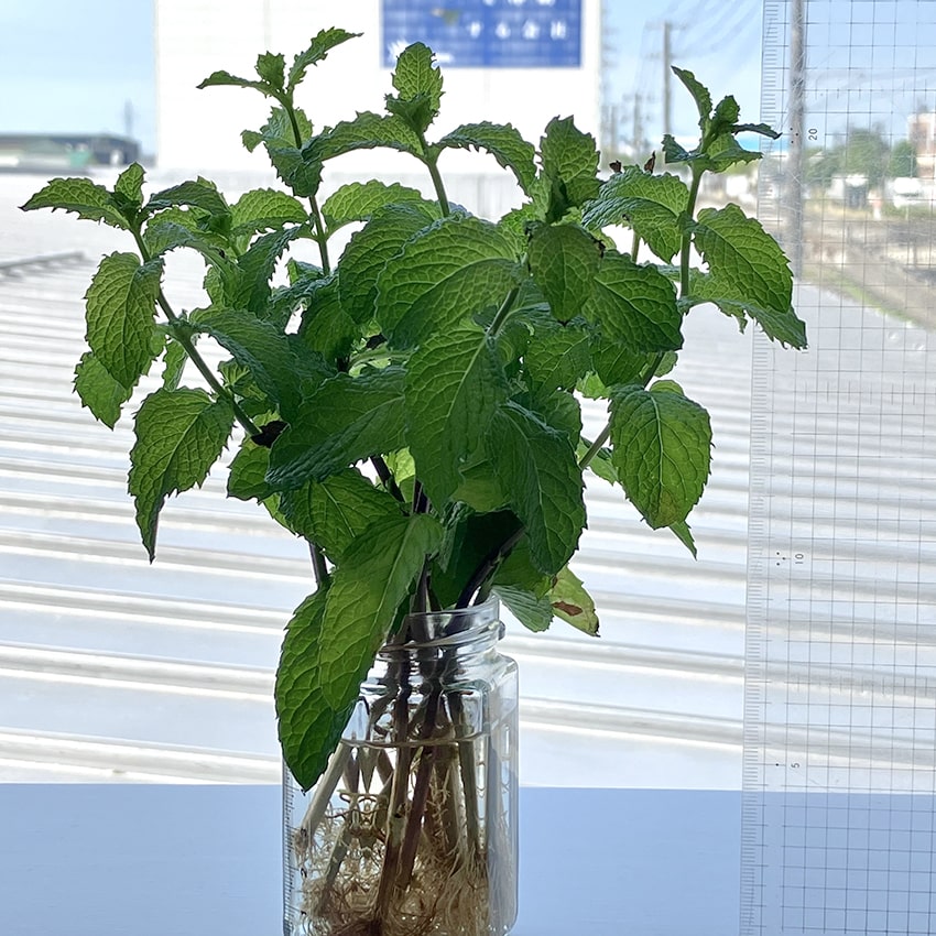 ミントくん、なかなかの成長力を見せる。根っこがしっかり伸びている。「ミントは強い」とはよく聞くけれど、なるほど、納得。私は見習うべきかもしれない。