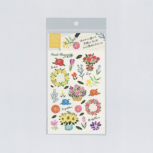 透け感のあるトレーシングペーパー素材を使用したステッカーは、貼った紙に自然に馴染み、まるで手書きのような仕上がりに。上から文字を書き込むことができるため、スケジュール帳の予定に合わせてデコレーションしたり、メッセージカードにひとこと添えたりと、さまざまなシーンで活躍します。
