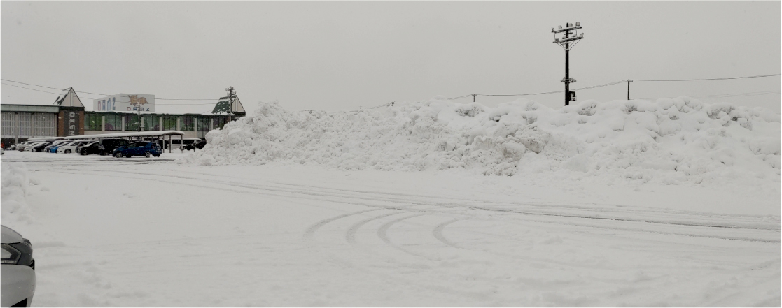 駐車場は除雪後の雪山が聳え立っております。